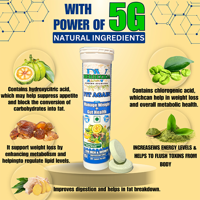 - NATURAL with No ADDED SUGAR: : The effervescent tablets are manufactured in GMP certified factory with High-Quality and Plant-Based ingredients. Plant-based supplement takes time and patience to show results but the power of 5G ingredients of Green Coffee, Green Tea, guggul, ginger & Garcinia helps better metabolism & helps in weight management.